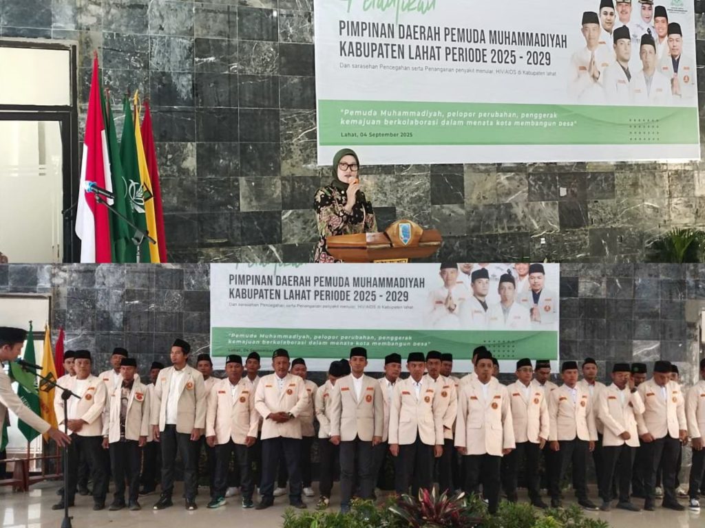 LAHAT — Wakil Bupati Lahat, Widia Ningsih., S.H., M.H hadiri pelantikan pimpinan daerah pemuda Muhammadiyah Kabupaten Lahat periode 2025-2029 di Gedung pertemuan Pemkab Lahat, Kamis (4/9/2025).